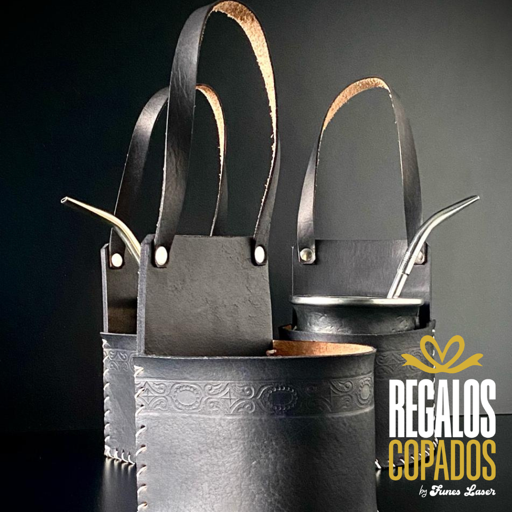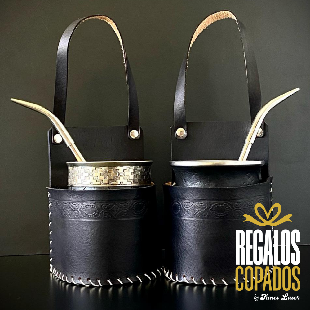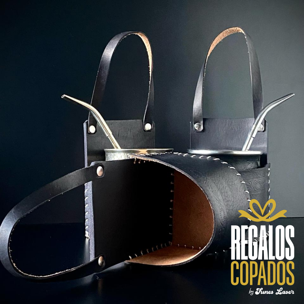 Portamate colgante para auto artesanal confeccionado en cuero vacuno. Utilizable para cualquier modelo de mate, tanto de calabaza, de acero como también de algarrobo en sus distintas formas ya sean camioneros, imperiales o mates térmicos.