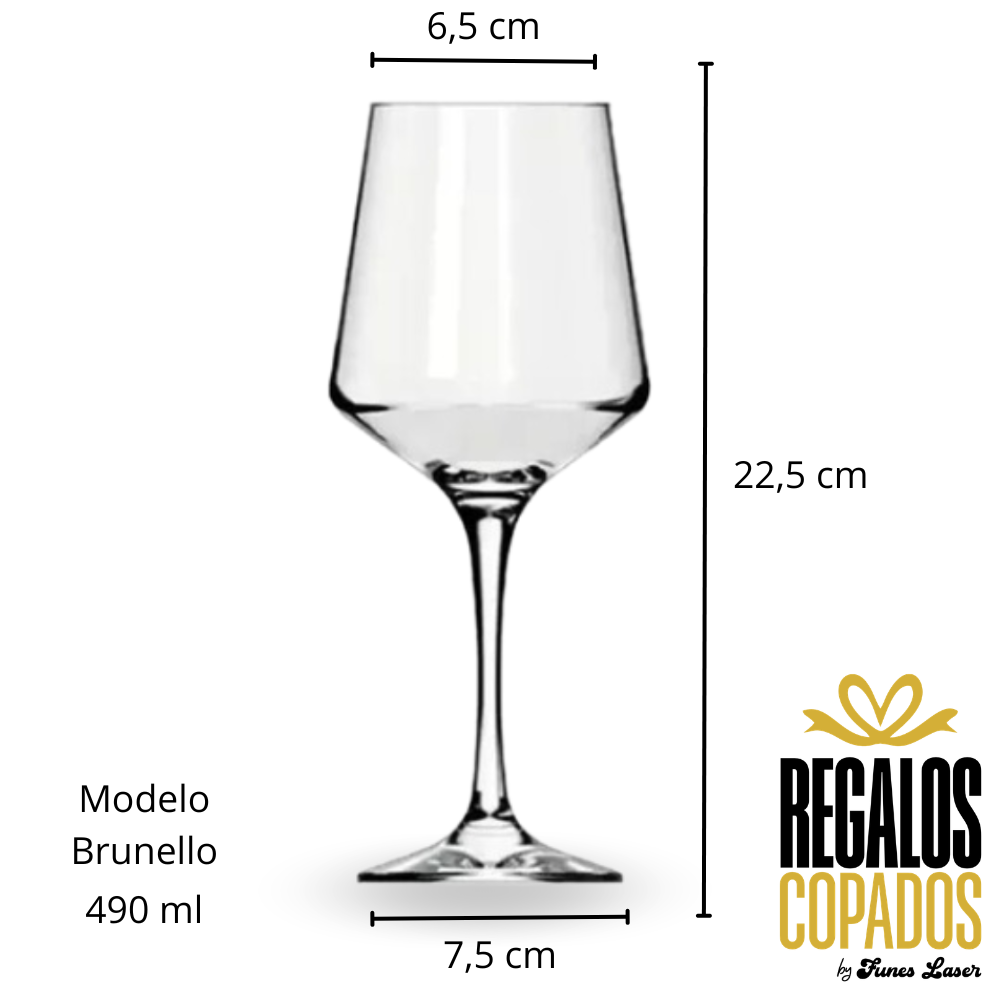 Box 🍷 copa de vino de vidrio transparente 490 ml personalizada con grabado láser.