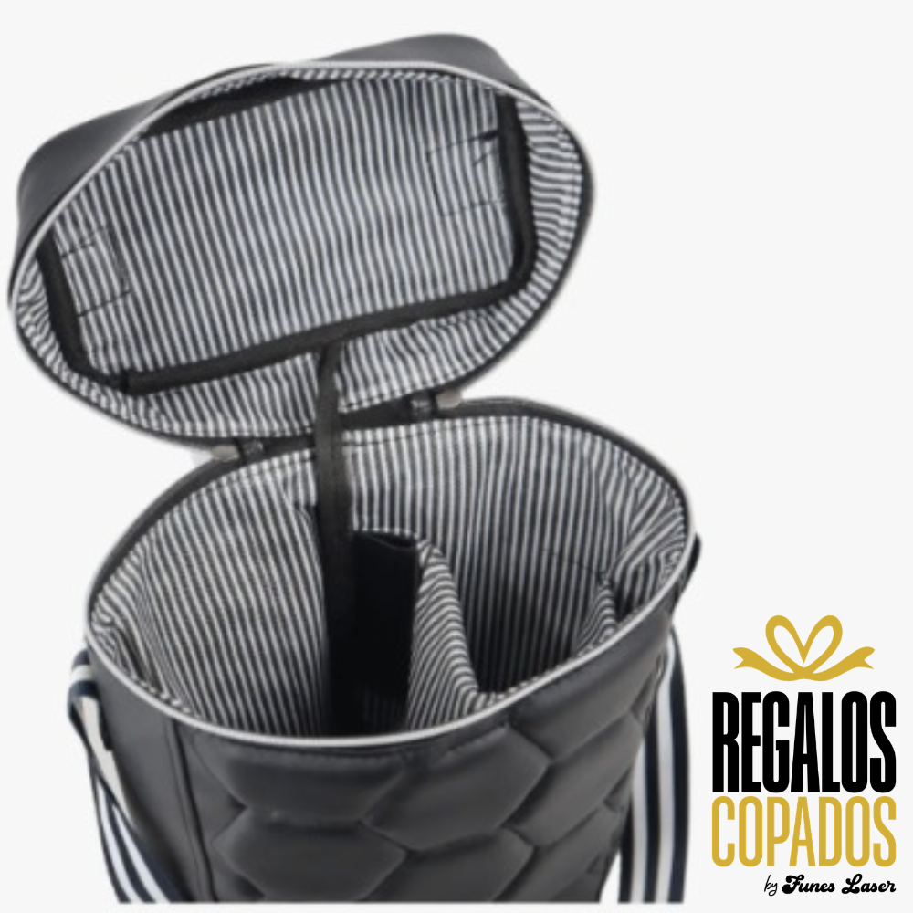 Bolso matero estilo morral de ecocuero con costura gajos de Pelota.