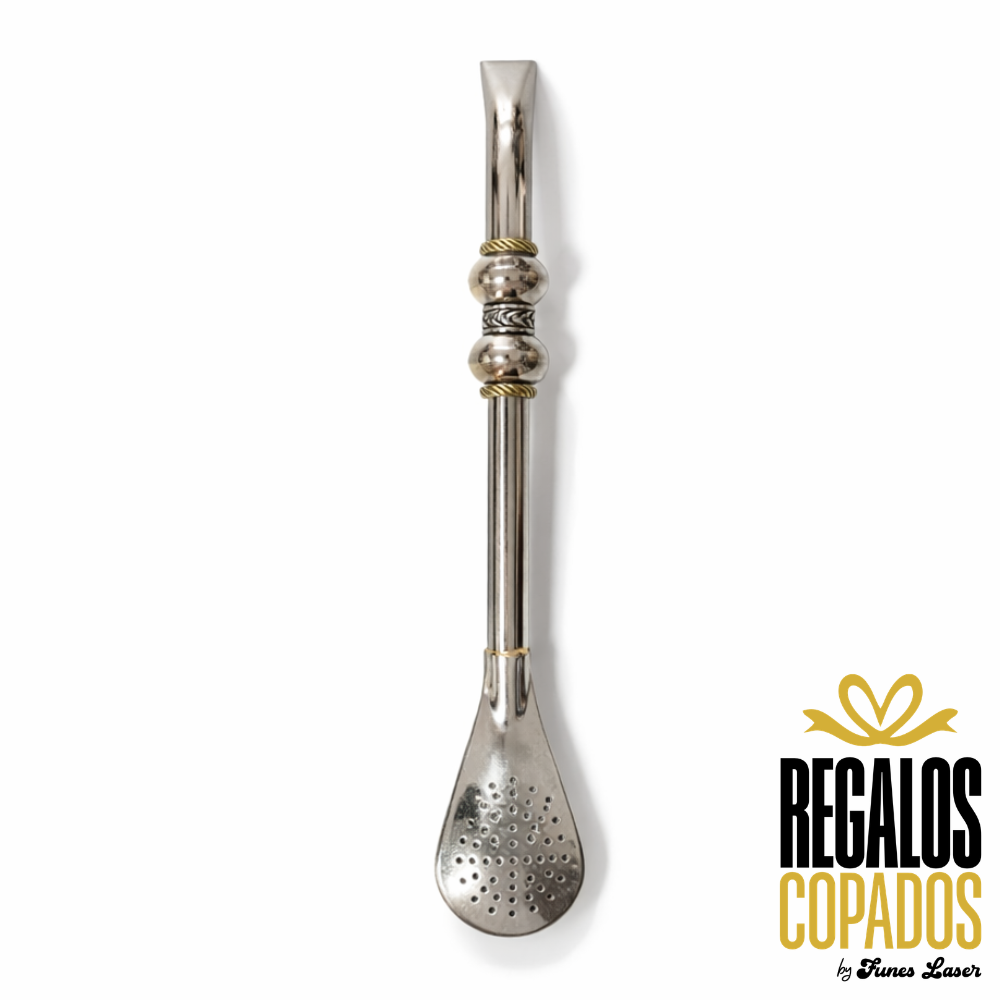 Filtro de bombilla tipo pala, ideal para introducirla en el mate y modelar la yerba mate, o al terminar y limpiar el mate para extraer la yerba usada. Además su amplio filtro es ideal para usar con yerba mate sin palo.
